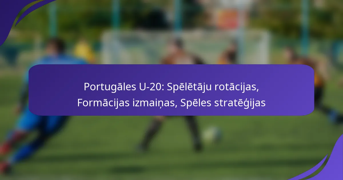 Portugāles U-20 komanda stratēģiski izmanto spēlētāju rotācijas, lai saglabātu augstu sniegumu spēļu laikā, ņemot vērā tādus faktorus kā fiziskā sagatavotība un maiņu modeļi. Turklāt formācijas izmaiņas spēlē būtisku lomu, uzlabojot spēlētāju dinamiku un taktisko elastību, ļaujot komandai efektīvi izmantot pretinieku vājās vietas. Viņu dažādās spēļu stratēģijas uzsver pielāgojamību un galveno spēlētāju stipro pušu maksimizēšanu, kas veicina viņu panākumus konkurētspējīgajos turnīros.