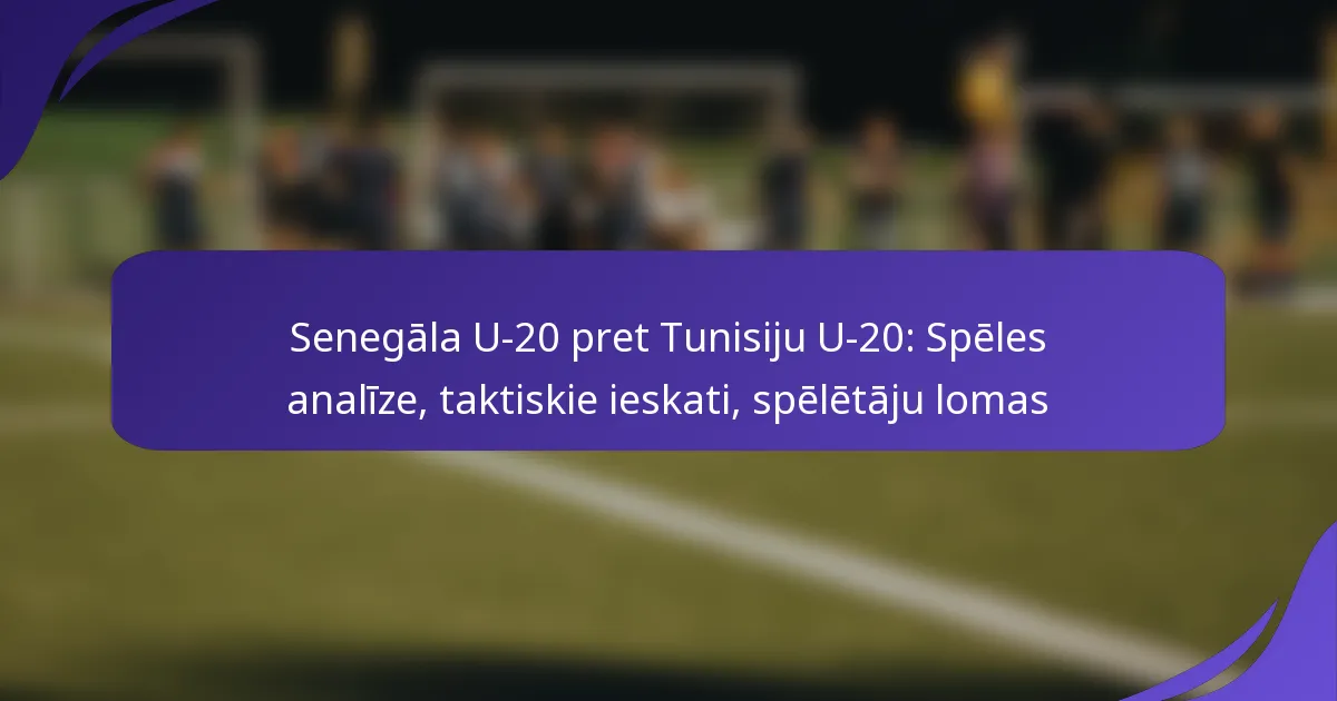 Senegālas U-20 un Tunisijas U-20 spēle iezīmējās ar kritiskiem momentiem, kas galu galā noteica rezultātu, tostarp uzvaras vārtus Senegālai un neizpildītu pendeli Tunisijai. Taktiskās formācijas spēlēja nozīmīgu lomu, Senegālai pieņemot agresīvu uzbrukuma stilu, kamēr Tunisija paļāvās uz stabilu aizsardzības stratēģiju. Šis sadursme ne tikai izcēla abu komandu atšķirīgās pieejas, bet arī parādīja izcilas izpildes no galvenajiem spēlētājiem, kas veidoja spēles intensitāti.