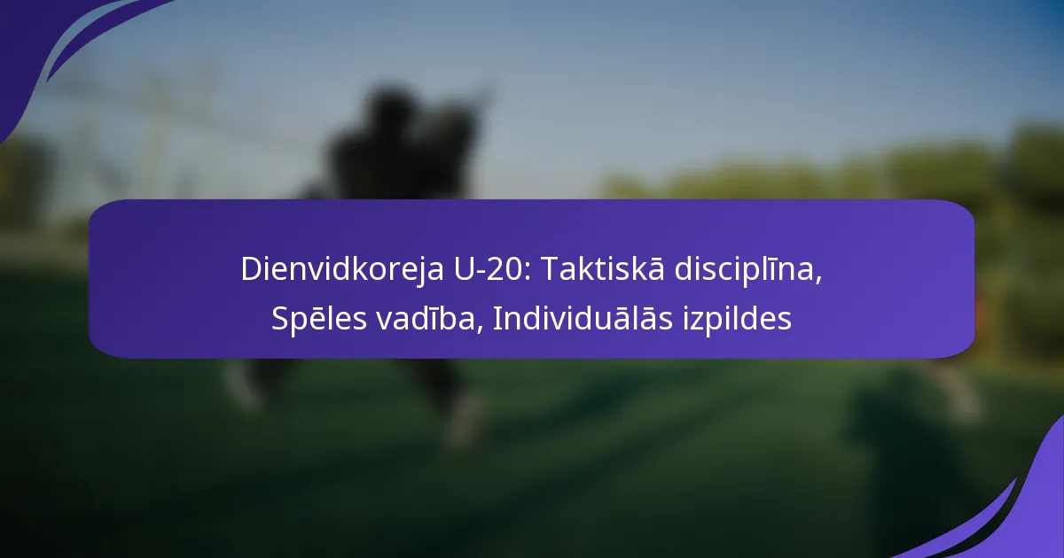 Dienvidkorejas U-20 komandas taktisko disciplīnu raksturo strukturētas formācijas, skaidras spēlētāju lomas un efektīva spēles vadība. Šī disciplīna uzlabo viņu spēju īstenot stratēģijas, kas maksimāli palielina sniegumu un pielāgošanās spējas spēļu laikā.