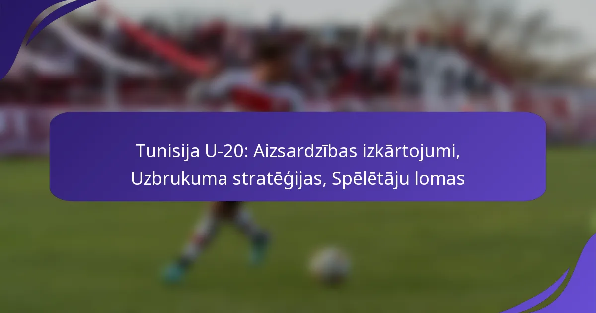 Tunisas U-20 komanda demonstrē stratēģisku aizsardzības un uzbrukuma plānu apvienojumu, uzsverot organizāciju un pielāgojamību. To formācijas ir izstrādātas, lai nodrošinātu aizsardzības stabilitāti, vienlaikus veicinot ātras pārejas, lai izmantotu uzbrukuma iespējas. Katram spēlētājam ir atšķirīga loma, kas ir būtiska šajā taktiskajā ietvarā, ļaujot komandai efektīvi izmantot telpu un radīt vārtu gūšanas iespējas.